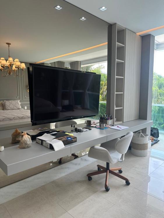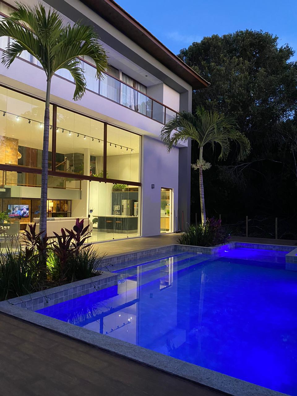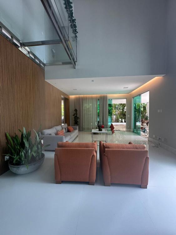 401m²Belíssima Casa 5/4, sendo 04 suítes, alto padrão, localizada no Condomínio Busca Vida, Camaçari/Ba, lugar com muita área verde, árvores frutíferas, onde pode-se pedalar, caminhar com tranquilidade e segurança, próximos a uma das mais belas e privativas praias do litoral baiano, ambientes totalmente climatizados, área gourmet, sala de cinema com isolamento acústico, armários planejados, energia solar, irrigação mecanizada com 02 poços, piscina treino olímpico, churrasqueira, academia completa, 06 banheiros, garagem comporta 4 veículos. O condomínio é arborizado, possui segurança 24h, câmeras para monitoramento, piscina, portaria principal e portaria do condomínio.